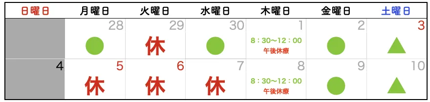 2025年のゴールデンウィーク期間中の施療日についてご案内いたします。ご確認ください。